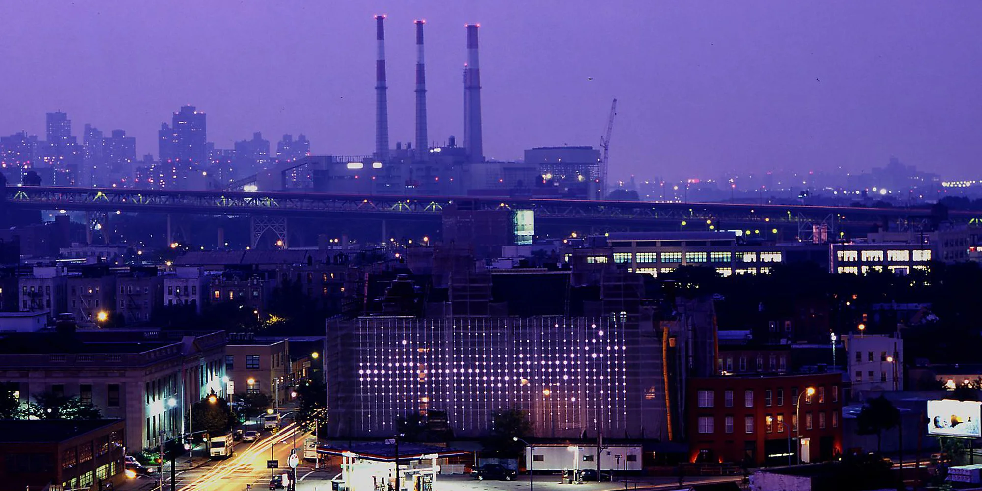 Leo Villareal’s Supercluster was a temporary light installation at the PS1 Contemporary Arts Center, which was under extensive renovation to its facade in 2003.